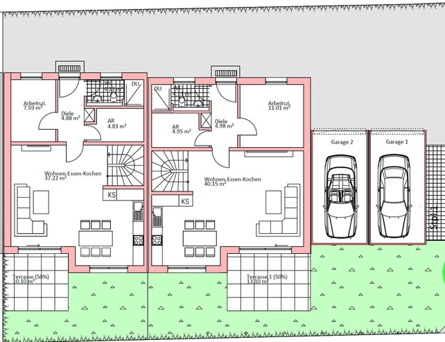2 Wohnhäuser mit ca. 125 bzw. 139 qm Wohnfläche inklusive Garage sowie Stellplatz